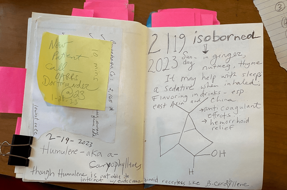 The myrcene that makes medical cannabis patients–and this group of stoners, hungry is kicking in for all of us. It was after 4 p.m., so indicas–which we get patients to remember are restful, or as we said to the new ones–who always laugh, “in-da-couch,” were burning. This meant that it took just one prompt for the concentrate burning garage dwelling dabbers to come to light with the dank, earthy, musky smell of Klutch’s Blue Cheese strain trailing behind them.