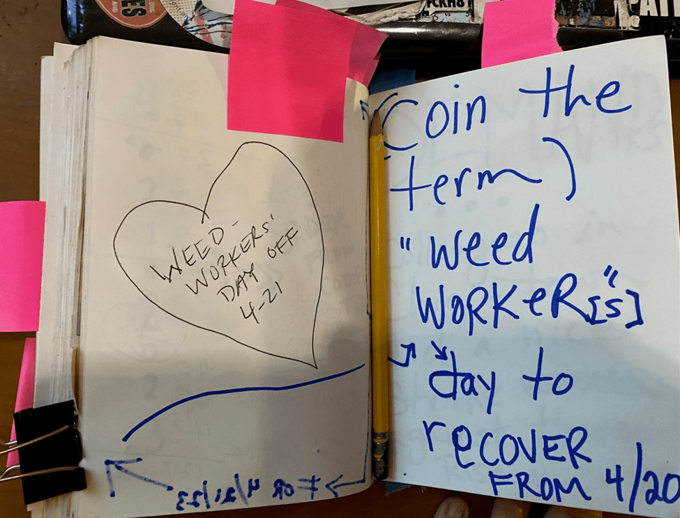 While I sold cannabis for an hourly wage and was sometimes treated poorly by patients, I was also always am a gender studies professor and a historian, primarily. This meant that demanding accountability was as vital to my work at A Rose! as it was anywhere else in the world.